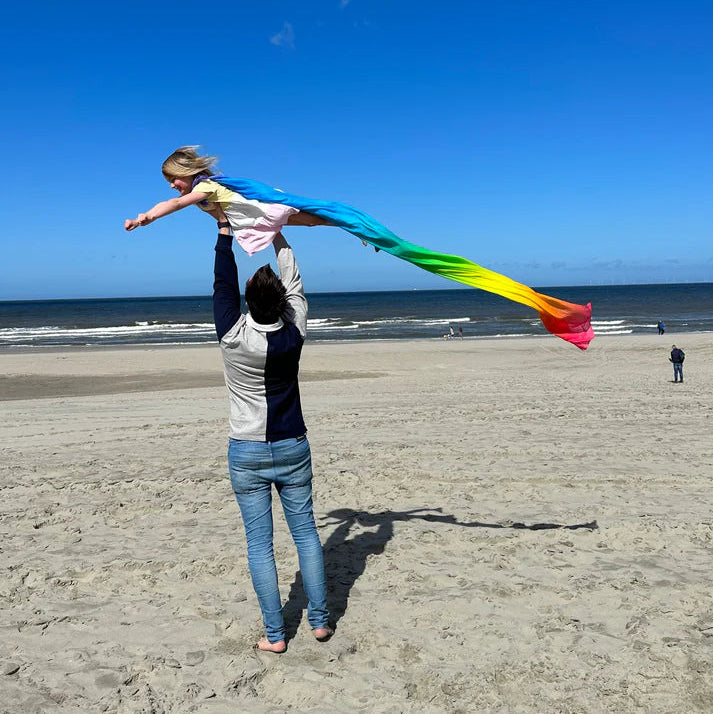 Measuring 90 x 270 cm, the Play Cloth Rainbow offers ample space for endless imaginative play. Its vibrant and captivating rainbow design will instantly capture your child’s attention, sparking their creativity and encouraging hours of fun-filled adventures. Whether it’s transforming the cloth into a magical fort, a cozy picnic spot, or a make-believe runway, the possibilities are truly limitless.